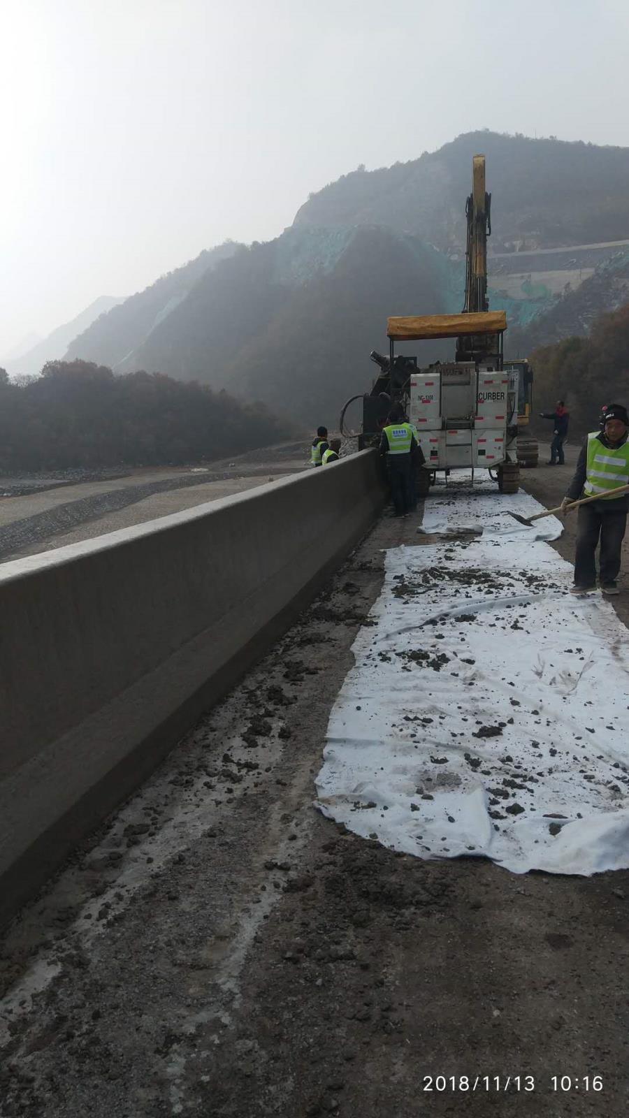 NC1300路緣石滑模機-山西晉城G207國道防撞護欄滑模攤鋪工程