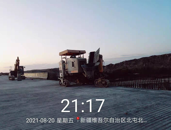 NC1300滑模攤鋪機(jī)在新疆北屯施工的防撞護(hù)欄滑模施工工程